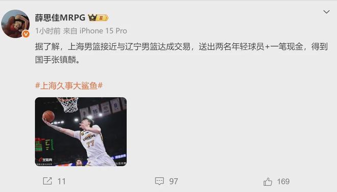 雷速体育8月27日讯 今日,据多位媒体人报道,CBA辽宁前锋张镇麟被交易至上海男篮,具体交易细节未披露。随后,媒体人@麦穗丰在社媒发布长文发表了自己的看法:“我确实挺佩服张镇麟