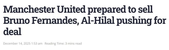 「洞悉越位」报道称,吉姆·拉特克里夫爵士的英力士管理团队非常清楚,要引进两名中场新援,可能就不得不出售B费,他们的目标是卖出7000万英镑。马克·布鲁斯解释道:「曼联高层似乎越来越愿意出售B费来获取利益。毕竟,沙特阿拉伯职业联赛的多家俱乐部仍然对他感兴趣,其中利雅得新月和利雅得胜利表现出了尤为强烈的兴趣。」